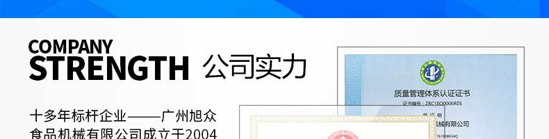 广州旭众食品机械有限公司是一家集科研开发,生产设计,营销服务为一体的现代化生产企业。现代化生产车间,精湛制造技术,所产机械历经市场重重考验,不断赢得海内外客户的赞誉。