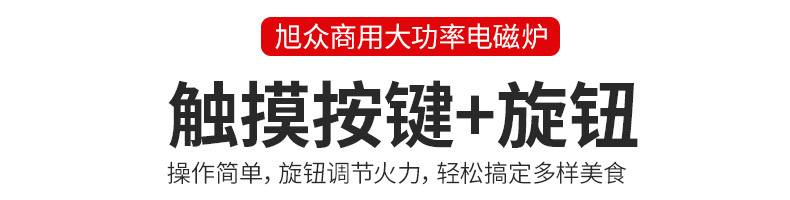 台式平炉旋钮XZ-DSK2X1,商用智能电磁炉3500W大火力、节能省电、聚能加热。您需要一台经久耐用的好电磁炉不锈钢材质加厚不锈钢架构,稳定耐用,不易生锈,耐腐蚀,易清洁,干净省事。