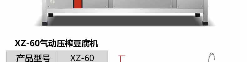 XZ-60智能豆腐机,一机多用:可生产豆腐系列产品:单色(嫩,老)豆腐、多彩豆 腐、单色豆腐皮、多色豆腐皮、彩色豆腐干、豆浆、豆花等豆制品制作,还可以与其他设备和工艺配套生 产更多的豆制品。