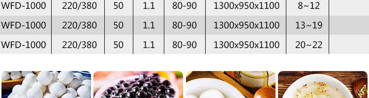 VFD-1000无馅汤圆机,本机可生产无馅汤圆、珍珠汤圆、桂花汤圆、奶茶所用的珍珠、槟榔红丸、工艺品等。规格有8-34mm,可根据客户要求定制。适用于个体户、食品厂、学校等单位食堂。可满足不同客户群体。免费提供工艺技术。