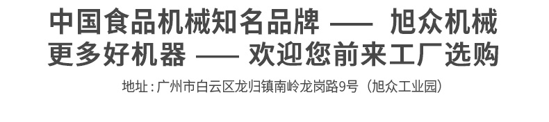 广州旭众食品机械有限公司是一家集科研开发,生产设计,营销服务为一体的现代化生产企业。现代化生产车间,精湛制造技术,所产机械历经市场重重考验,不断赢得海内外客户的赞誉。