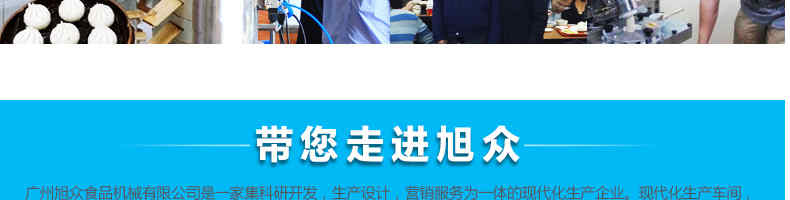 广州旭众食品机械有限公司是一家集科研开发,生产设计,营销服务为一体的现代化生产企业。现代化生产车间,精湛制造技术,所产机械历经市场重重考验,不断赢得海内外客户的赞誉。