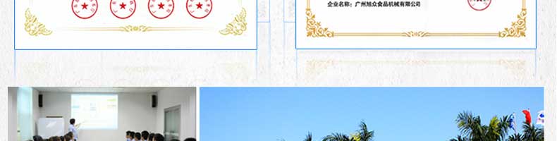广州旭众食品机械有限公司是一家集科研开发,生产设计,营销服务为一体的现代化生产企业。现代化生产车间,精湛制造技术,所产机械历经市场重重考验,不断赢得海内外客户的赞誉。